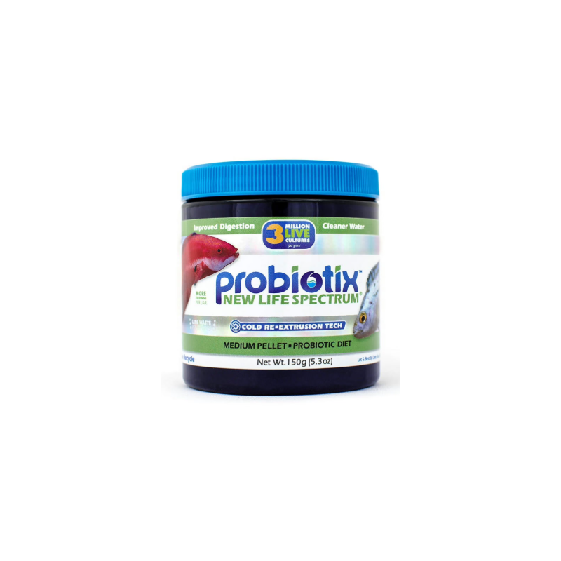 New Life Spectrum® Probiotix® es un alimento mejorado con probióticos que mejora la digestión y la calidad del agua a través de nuestra propia mezcla de cultivos probióticos. Probiotix actúa de tres maneras para mejorar la salud de tus peces: mejor absorción de nutrientes por parte de tus peces, desechos más limpios con menos fósforo, y agua más limpia ya que los desechos cargados con probióticos llegan a los filtros. Es un ciclo virtuoso.